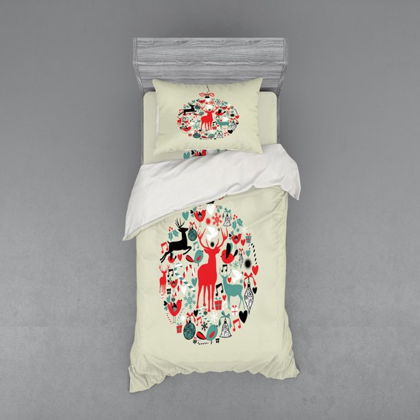 Christmas Duvet Cover Set Traditional Season Celebration Christmas Themed Design Abstract Art Bedding Set With Shams And Fitted Sheet 3 Sizes By Ambesonne Walmart Com